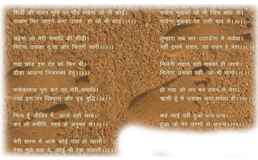 It is well-known that Baba took Dakshina from all, and out of the amount thus collected, He spent a lot on charity and purchased fuel with the balance left with Him. This fuel he threw in the Dhuni - the sacred fire, which he kept ever burning. The ash from this fire was called Udi and it was freely distributed to the devotees at the time of their departure from Shirdi. Udi or ash is the purest substance on earth having tremendous powers of doing and undoing and is the result of sacrifices offered to fire (agni) which purifies everything by destroying whatever is evil.